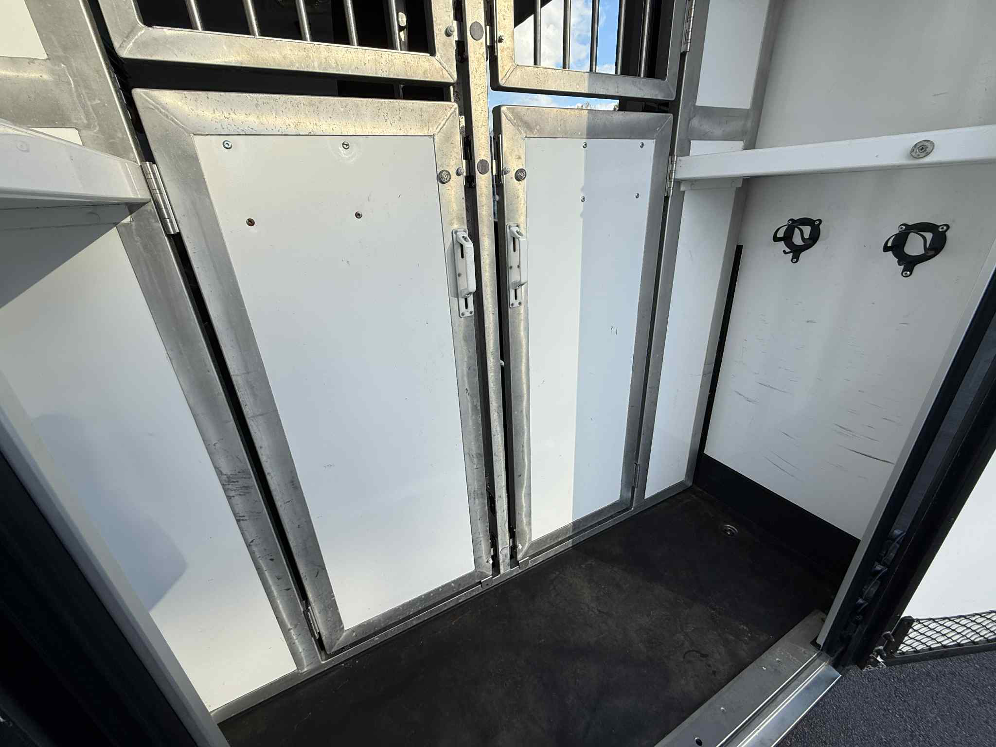 Fönster mellan kabin och hästdel med galler – öppningsbart